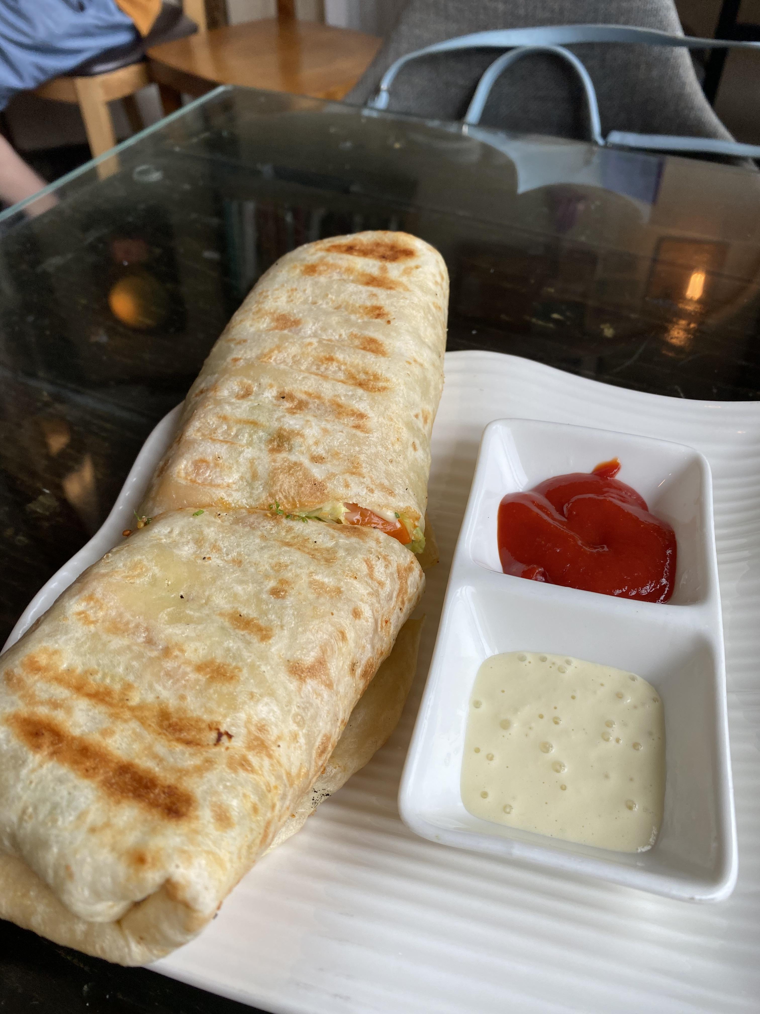 쫀득한 빵에 치킨과 채소들이 들어가서 맛납니다.