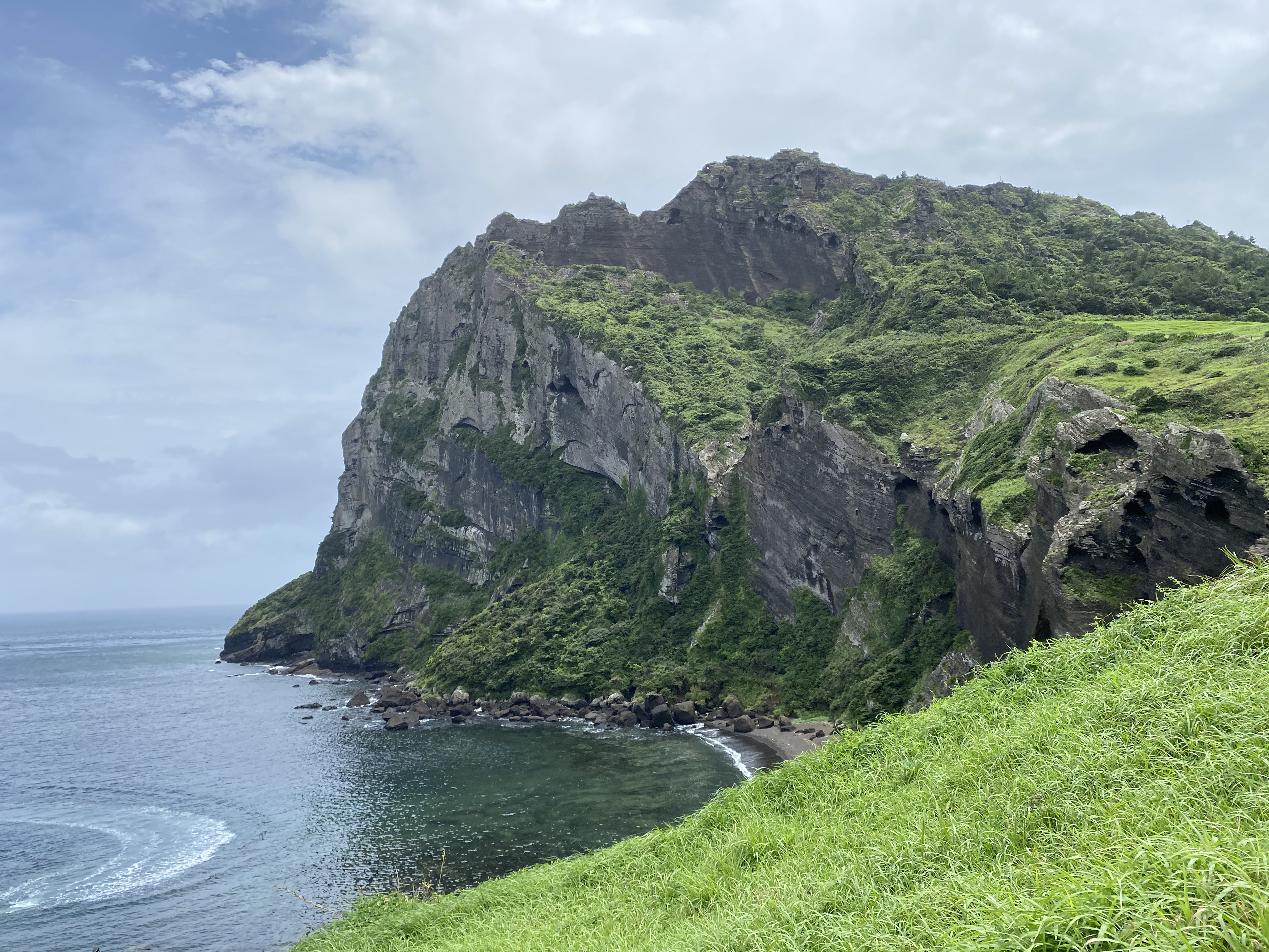 성산일출봉은 꼭대기 까지 올라가서 보는 경치도 좋지만, 사실 그냥 산 밑에서, 그리고 성산일출봉의 동쪽 절벽을 보는 풍경이 더 좋다고 생각합니다.