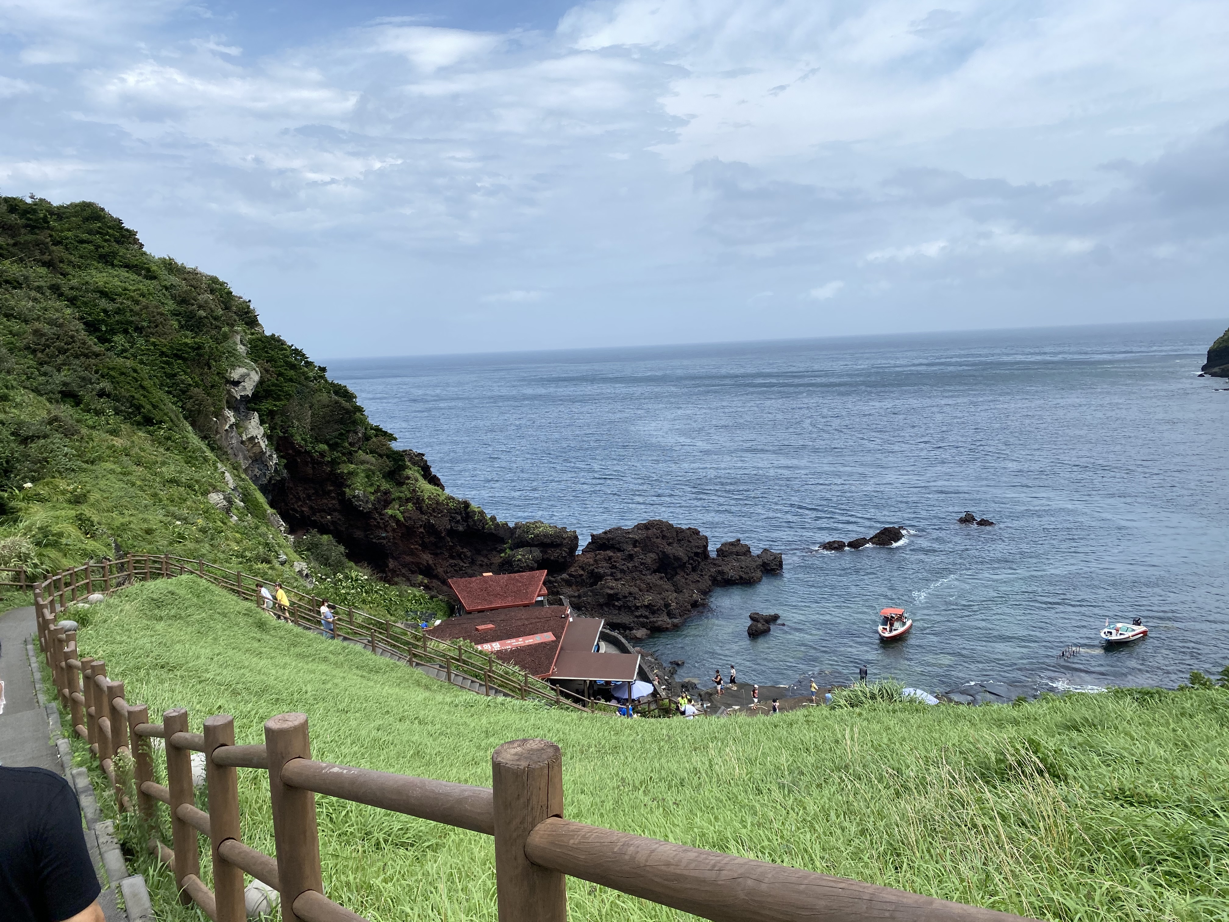 그리고 바닷가 까지 내려갈 수 있는데, 빨간 지붕으로 보이는건 해녀 횟집이고, 관광보트를 타는 곳도 있습니다.